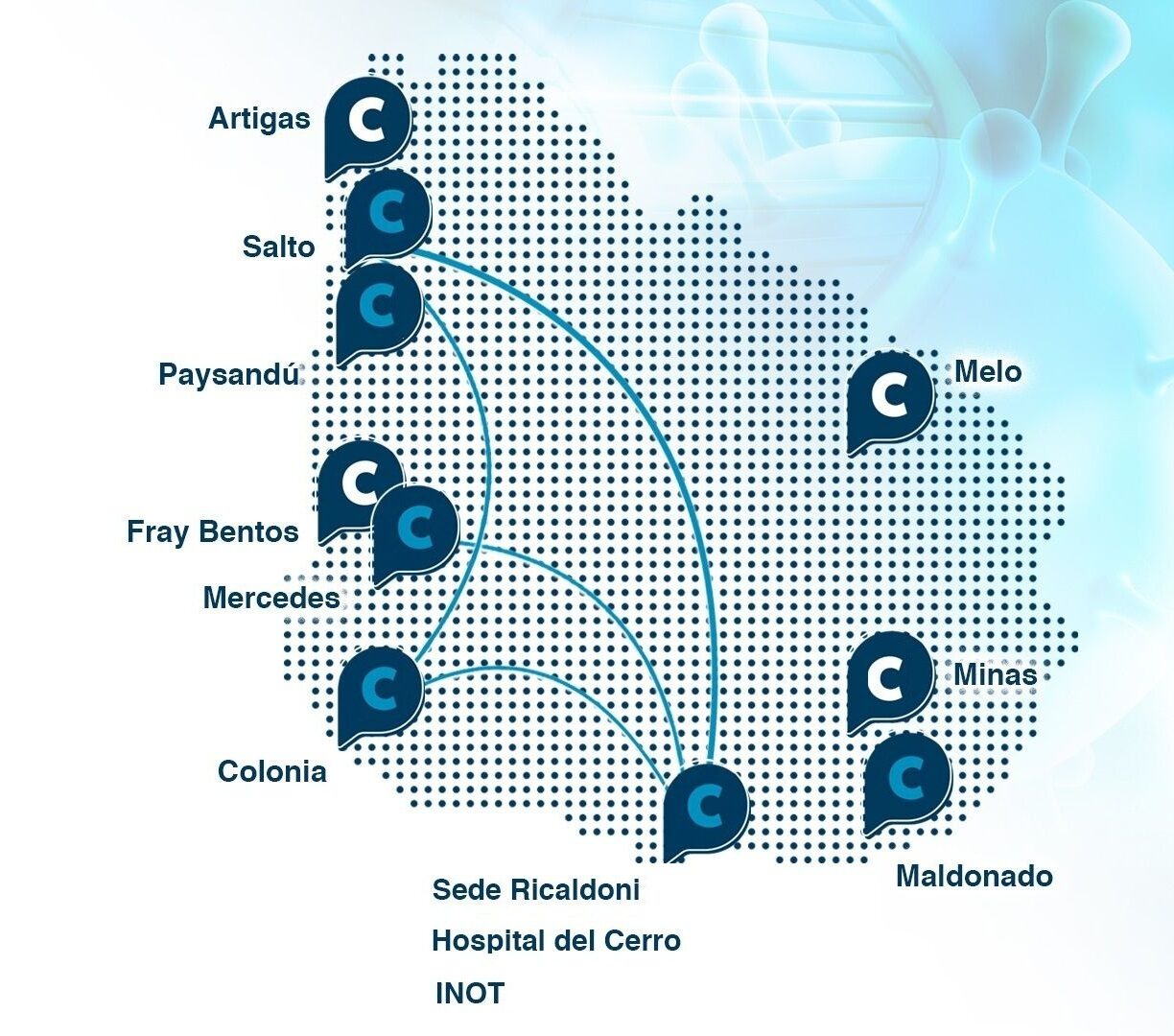 En convenio con ASSE gestionamos los tomógrafos del Hospital de Colonia, Mercedes Cerro, Salto e INOT para pacientes de dichos Hospitales. Próximamente contaremos con el servicio en otros departamentos, ampliando así el acceso a estudios de excelencia en todo el país.